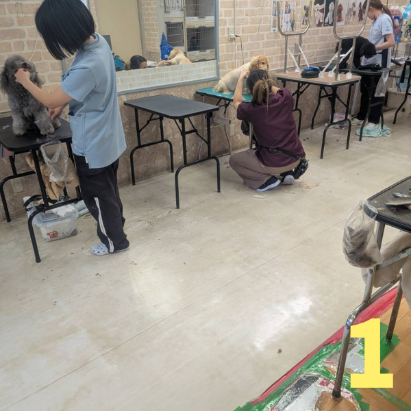 自宅では毛が飛んだり、シャンプー台やドライヤーなどがなく不便なので
